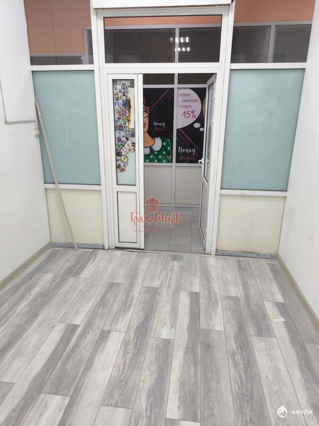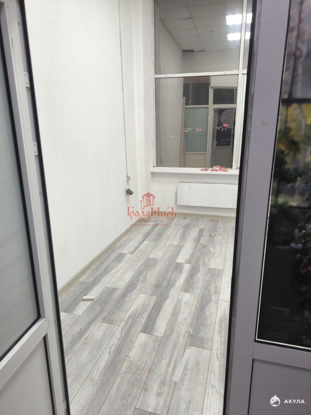 Стены под покраску, на полу ламинат. В эту цену включены охрана, уборка и все коммунальные услуги.