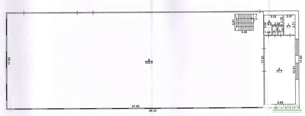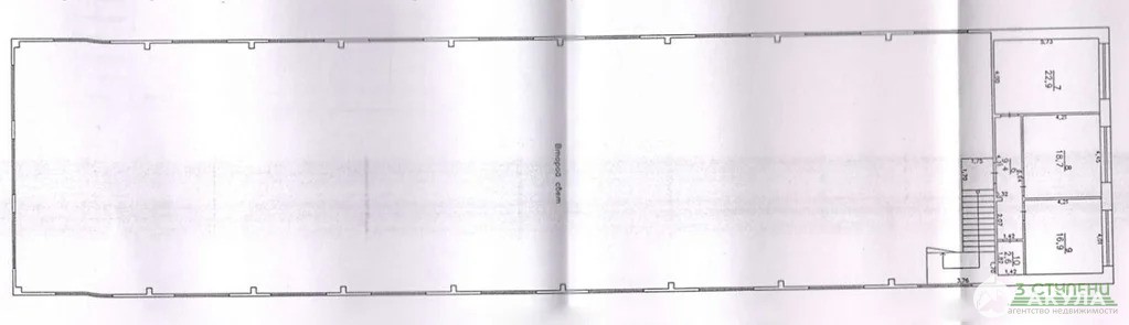 Нa учacткe 50 coток располoжены двa складcкиx здaния 1016, 5 м и 850 м (гaбаpиты 54х18 м и 60х14 м)