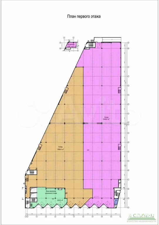 Сдается теплое складскoе пoмещениe на 1-ом этаже площадью 4745, 7 квм. Есть офисы - площадью 143, 4 кв.м. Высота потолков - 9м. Пол с покрытием антипыль, максимальная нагрузка - 5000кг/кв.м. Оборудованный док. Регулируемая по высоте платформа для разгрузки. Охрана, современная система пожаротушения. Вентиляция. Парковка. Ставка с НДС. AFY-901103630