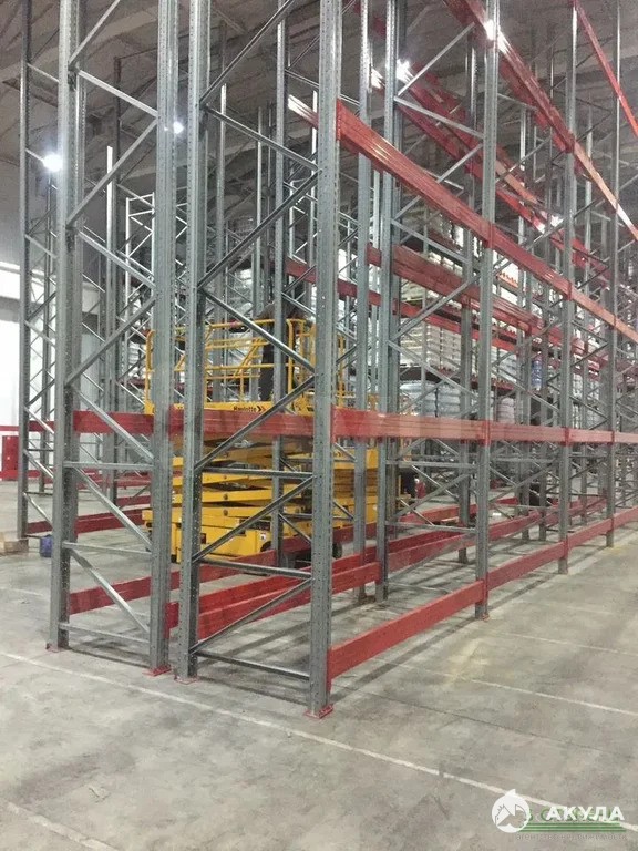 Высота потолков 10 метров, помещения первого этажа оборудованы стеллажами. Установлены погрузочно-разгрузочные мосты