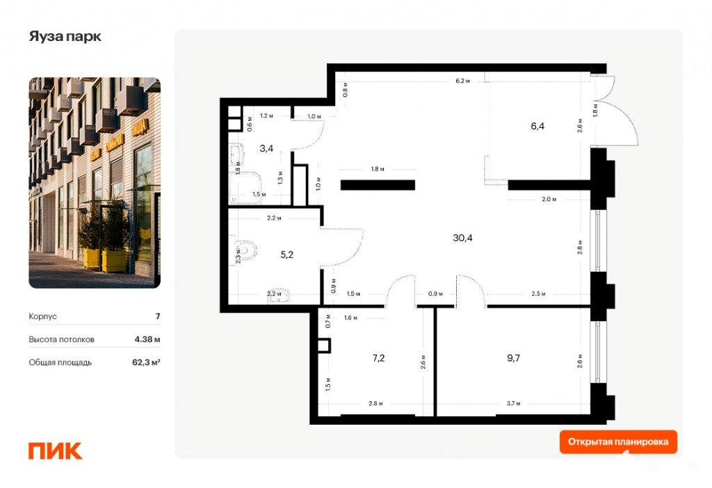 - 62 м²
