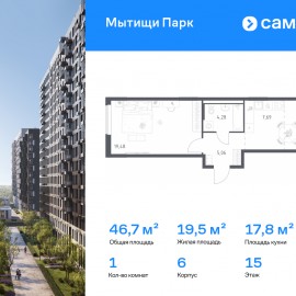 Строим кварталы для жизни с заботой о будущем. Предлагается 1-комнатная квартира комфорт-класса 46, 65 кв.м в корпусе 6 на 15 этаже, в ЖК «Мытищи Парк» Квартира без отделки. Доступность опции «отделка» и возможность комплектации мебелью и декором уточняйте у...