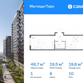 Строим кварталы для жизни с заботой о будущем. Предлагается 1-комнатная квартира комфорт-класса 48, 74 кв.м в корпусе 6 на 10 этаже, в ЖК «Мытищи Парк» Квартира без отделки. Доступность опции «отделка» и возможность комплектации мебелью и декором уточняйте у...