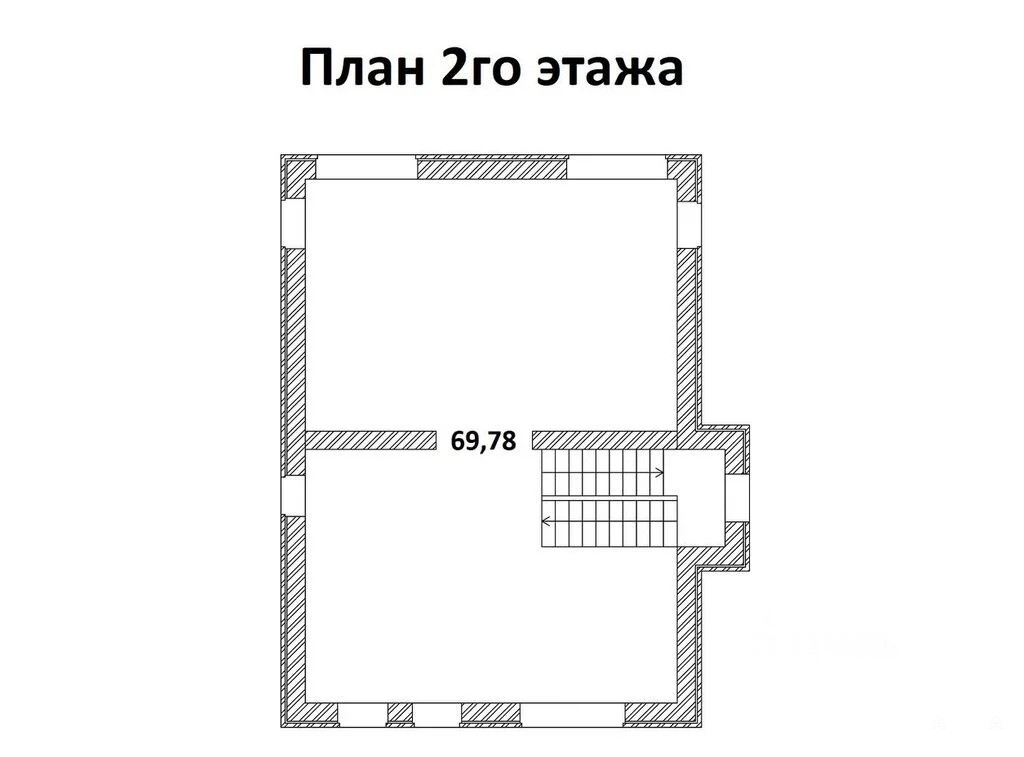 Площадь второго этажа – 69, 78 кв.м. Также свободная планировка, по желанию покупателя. Предполагается 2-3 комнаты, и также есть выводы в санузел.