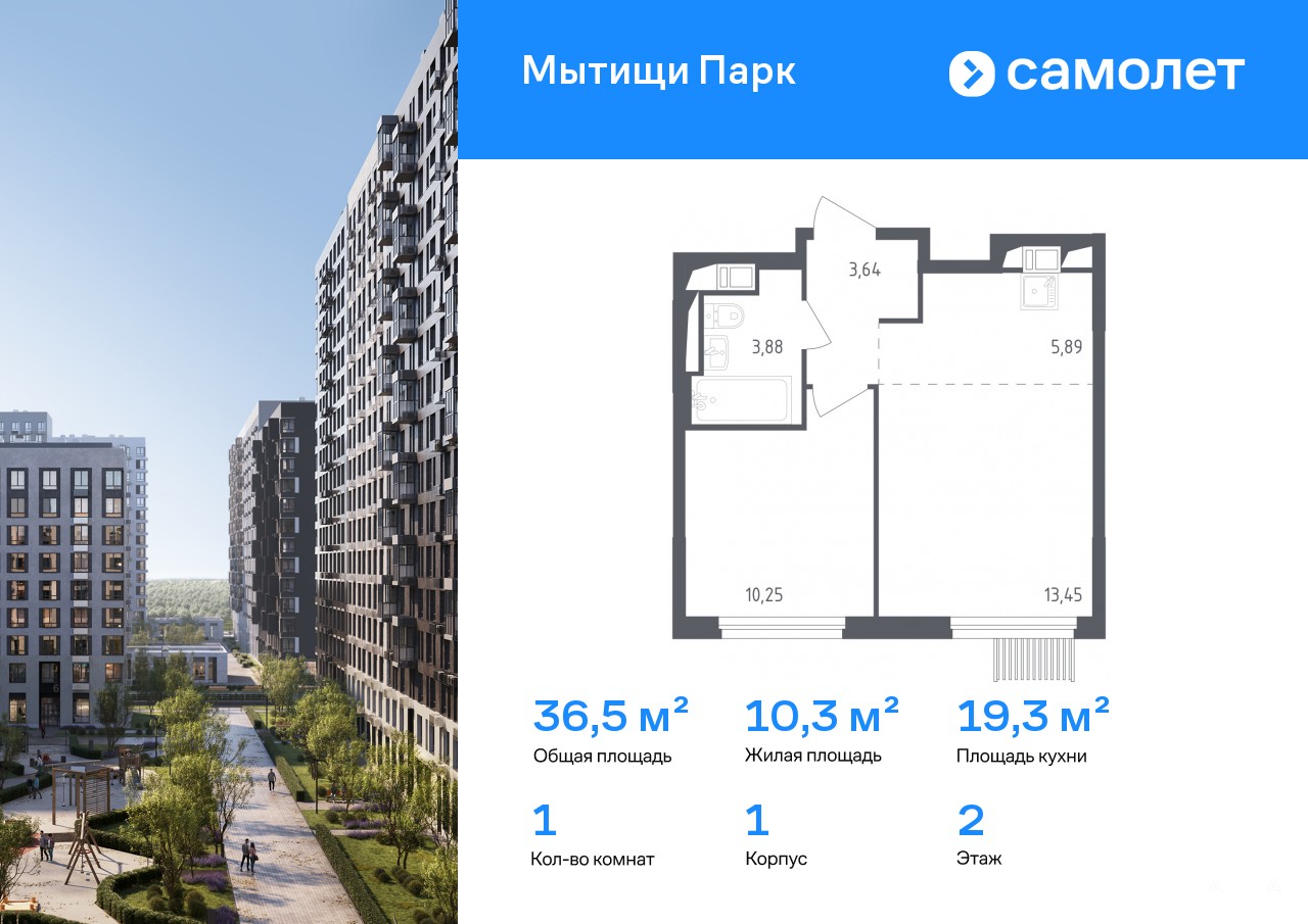 Строим кварталы для жизни с заботой о будущем. Предлагается 1-комнатная квартира комфорт-класса 36, 5 кв.м в корпусе 1 на 2 этаже, в ЖК «Мытищи Парк»