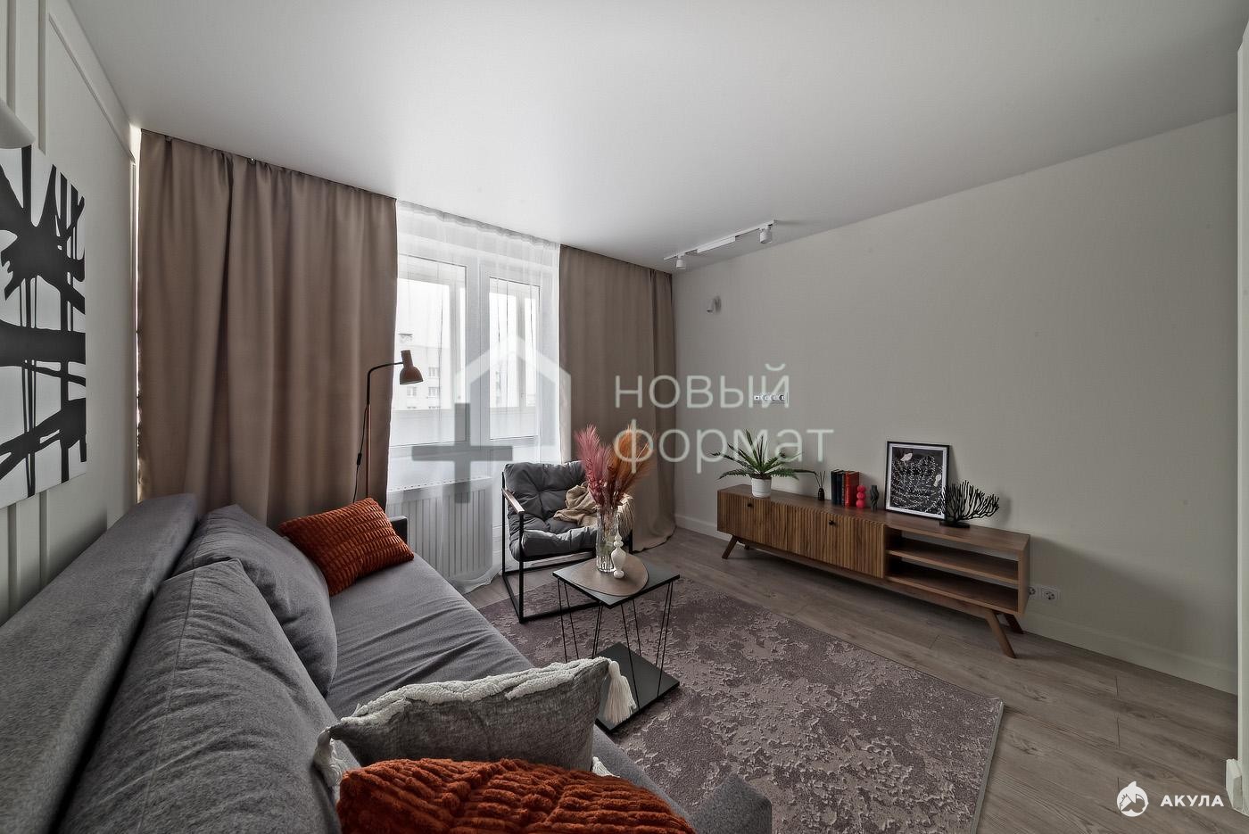 Светлое помещение благодаря большим окнам и грамотному распределению естественного света.
