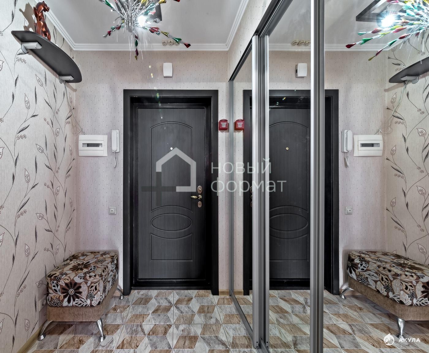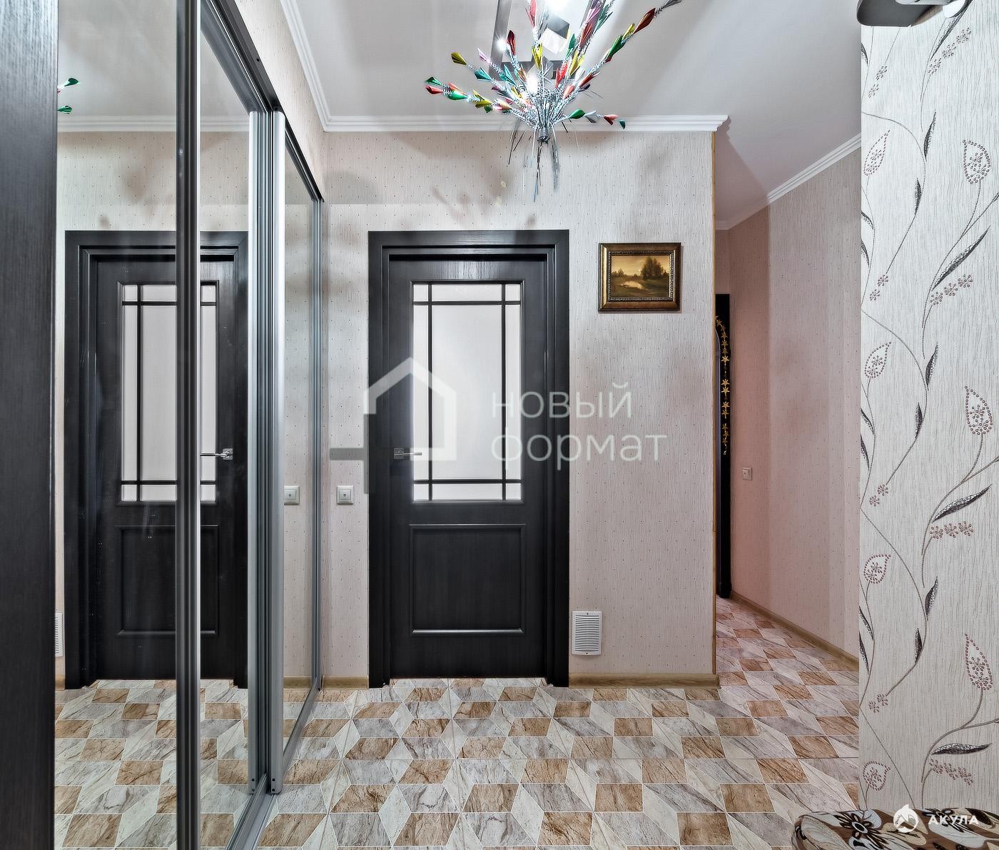 -коридор - вместительный гардероб за зеркальными раздвижными дверьми-купе (около 3 м²);