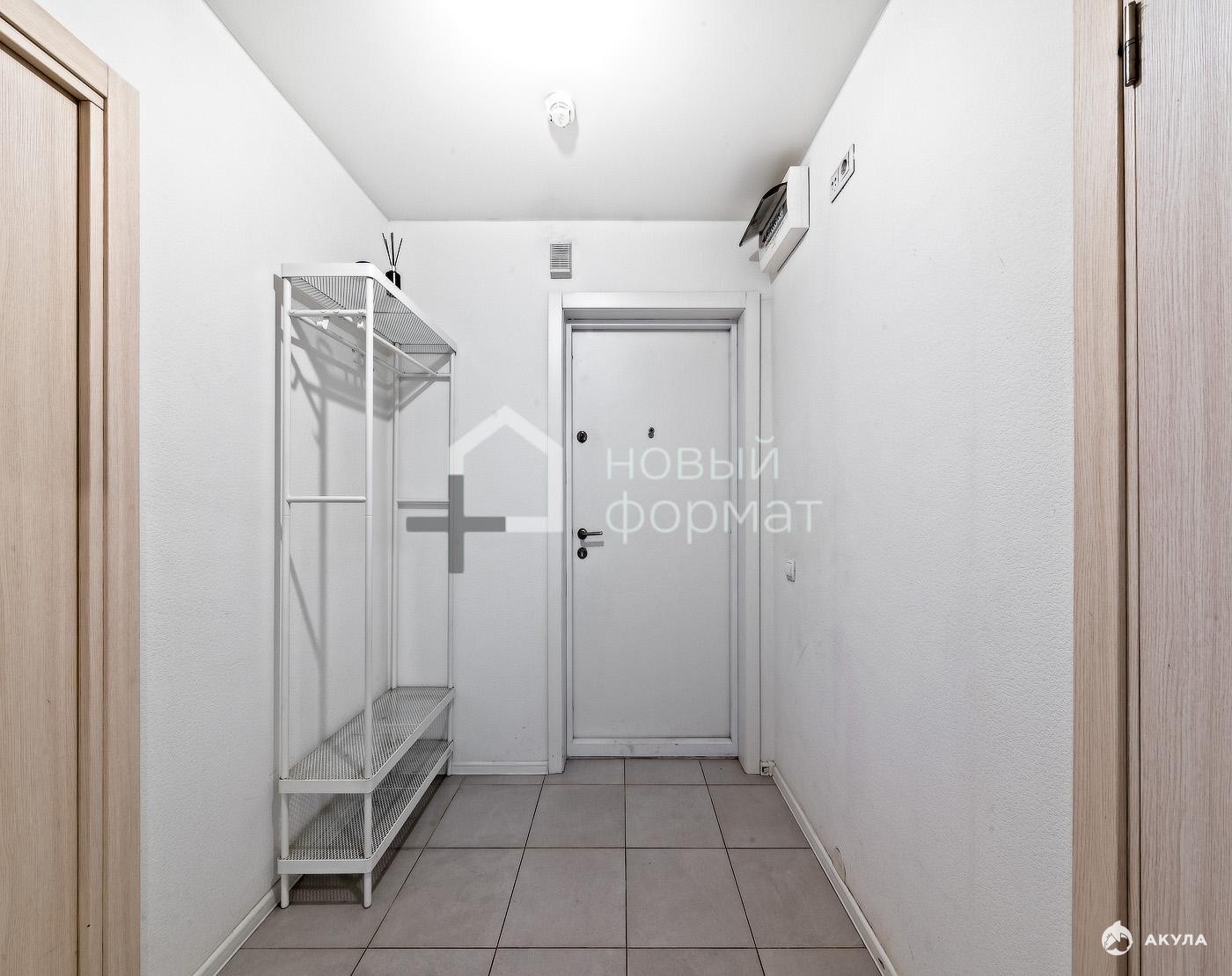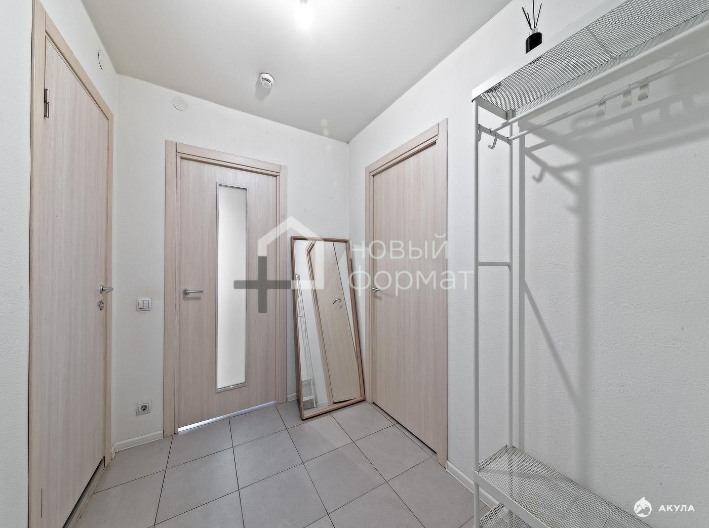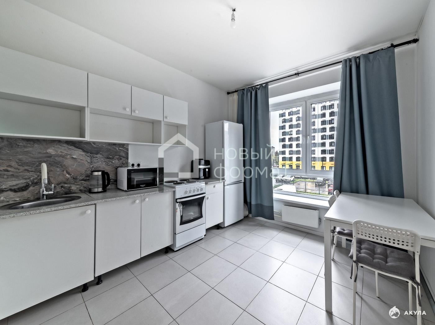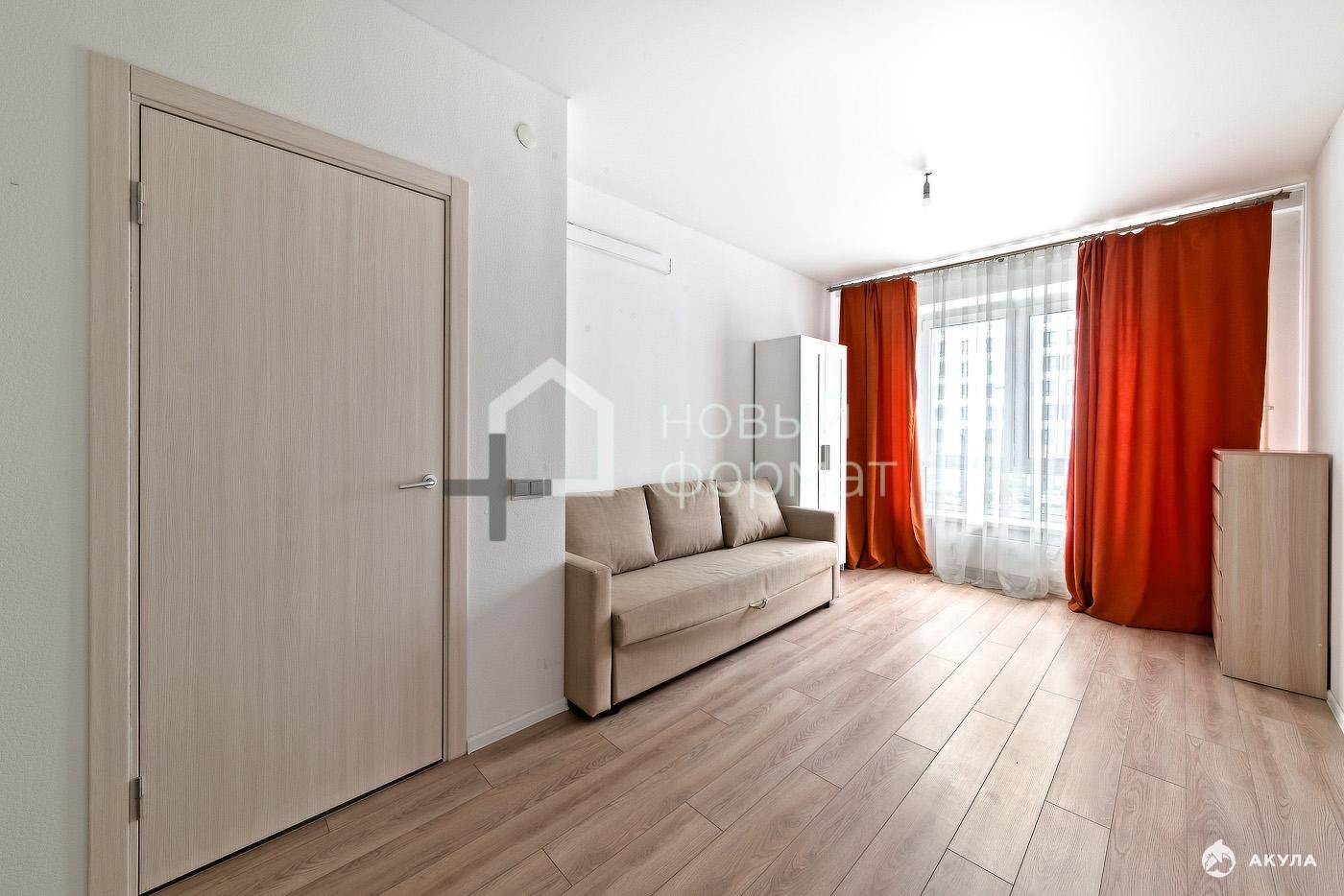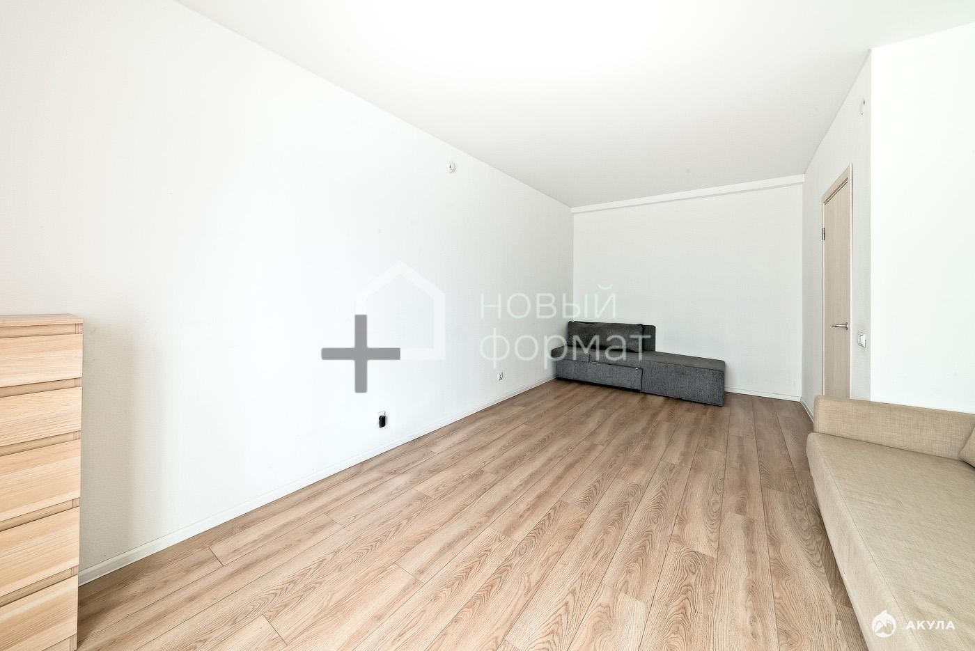 Общая площадь квартиры составляет 40, 3 кв. м, просторная комната — 19, 9 кв. м, площадь кухни — 11 кв. м. Высота потолков — 2, 8 м. Окна выходят на улицу, при этом никаких магазинов и шума нет. В квартире выполнен косметический ремонт от застройщика. Светлые тона и продуманная планировка делают пространство визуально больше и светлее.