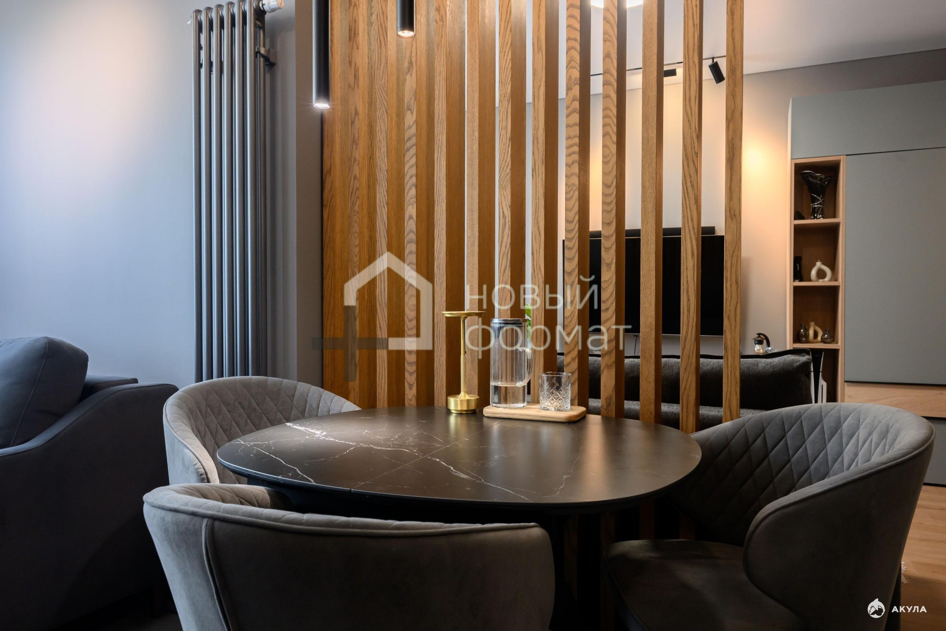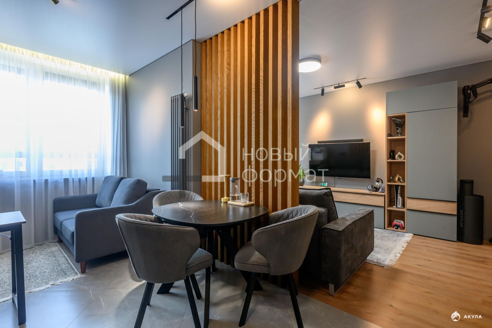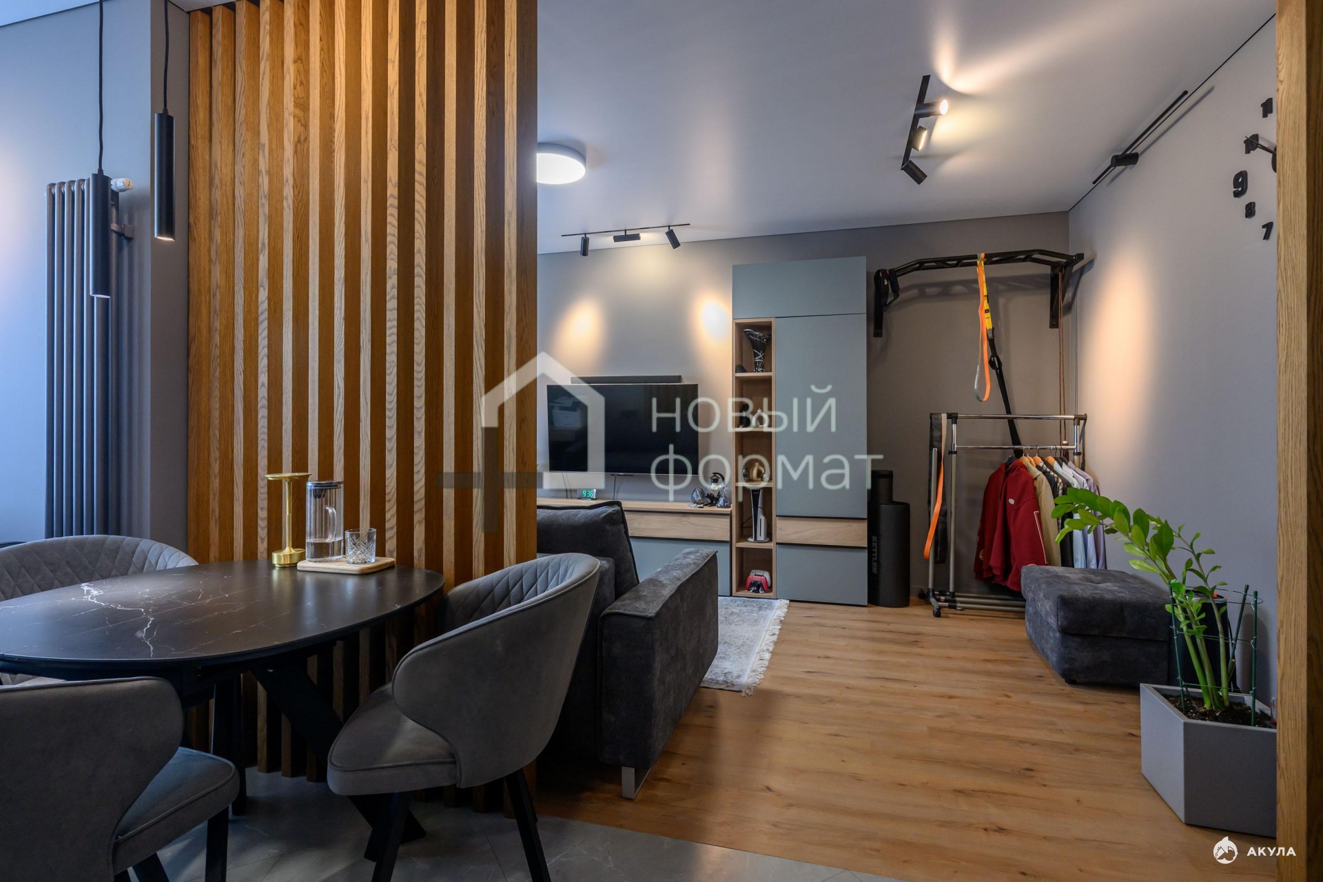 Общая площадь квартиры составляет 39, 3 кв. м, из которых 24 кв. м — жилая площадь и 12 кв. м — просторная кухня, где с удовольствием разместится вся семья для уютных вечерних ужинов.
