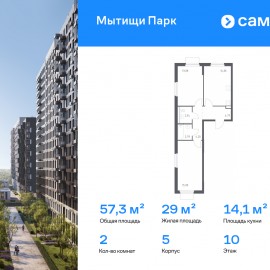 Строим кварталы для жизни с заботой о будущем. Предлагается 2-комнатная квартира комфорт-класса 57, 34 кв.м в корпусе 5 на 17 этаже, в ЖК «Мытищи Парк» Квартира без отделки. Доступность опции «отделка» и возможность комплектации мебелью и декором уточняйте у...