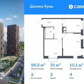 Строим кварталы для жизни с заботой о будущем. Предлагается 2-комнатная квартира комфорт-класса 56, 5 кв.м в корпусе 2 на 4 этаже, в ЖК «Долина Яузы» Квартира с чистовой отделкой. Доступность дополнительных опций уточняйте у застройщика. Приобрести квартиру возможно по...