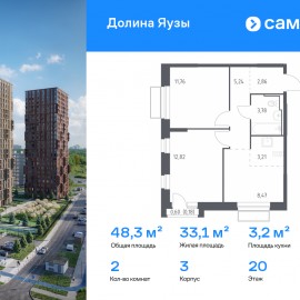Строим кварталы для жизни с заботой о будущем. Предлагается 2-комнатная квартира комфорт-класса 48, 32 кв.м в корпусе 3 на 20 этаже, в ЖК «Долина Яузы» Квартира с чистовой отделкой. Доступность дополнительных опций уточняйте у застройщика. Приобрести квартиру возможно по...