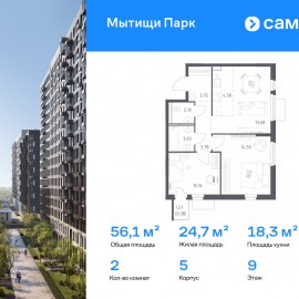 Строим кварталы для жизни с заботой о будущем. Предлагается 2-комнатная квартира комфорт-класса 56, 05 кв.м в корпусе 5 на 9 этаже, в ЖК «Мытищи Парк» Квартира с чистовой отделкой. Доступность дополнительных опций уточняйте у застройщика. Приобрести квартиру возможно по...