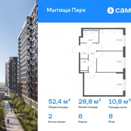 Строим кварталы для жизни с заботой о будущем. Предлагается 2-комнатная квартира комфорт-класса 52, 4 кв.м в корпусе 6 на 8 этаже, в ЖК «Мытищи Парк» Квартира с чистовой отделкой. Доступность дополнительных опций уточняйте у застройщика. Приобрести квартиру возможно по...
