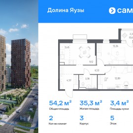 Строим кварталы для жизни с заботой о будущем. Предлагается 2-комнатная квартира комфорт-класса 54, 22 кв.м в корпусе 3 на 5 этаже, в ЖК «Долина Яузы» Квартира с чистовой отделкой. Доступность дополнительных опций уточняйте у застройщика. Приобрести квартиру возможно по...