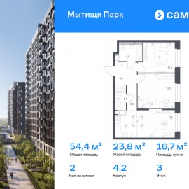 Строим кварталы для жизни с заботой о будущем. Предлагается 2-комнатная квартира комфорт-класса 54, 4 кв.м в корпусе 4.2 на 3 этаже, в ЖК «Мытищи Парк» Квартира с чистовой отделкой. Доступность дополнительных опций уточняйте у застройщика. Приобрести квартиру возможно по...