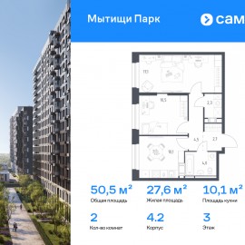 Строим кварталы для жизни с заботой о будущем. Предлагается 2-комнатная квартира комфорт-класса 50, 5 кв.м в корпусе 4.2 на 3 этаже, в ЖК «Мытищи Парк» Квартира с чистовой отделкой. Доступность дополнительных опций уточняйте у застройщика. Приобрести квартиру возможно по...