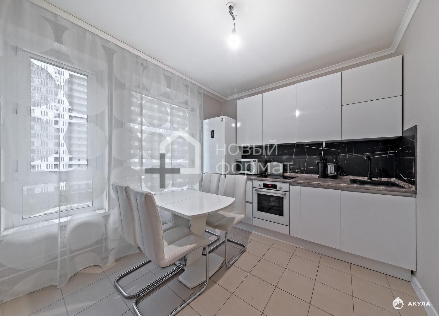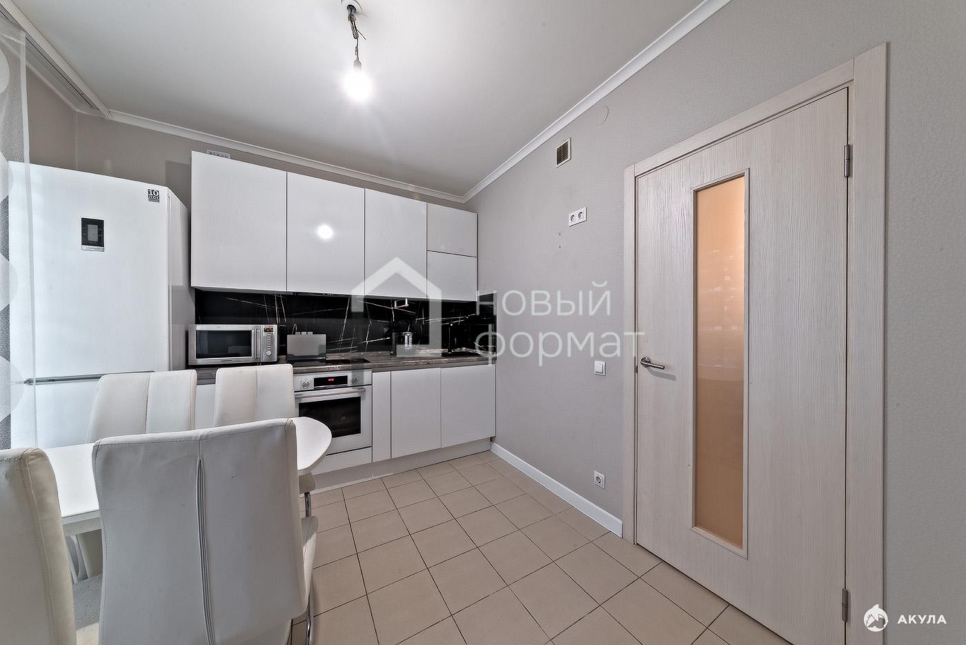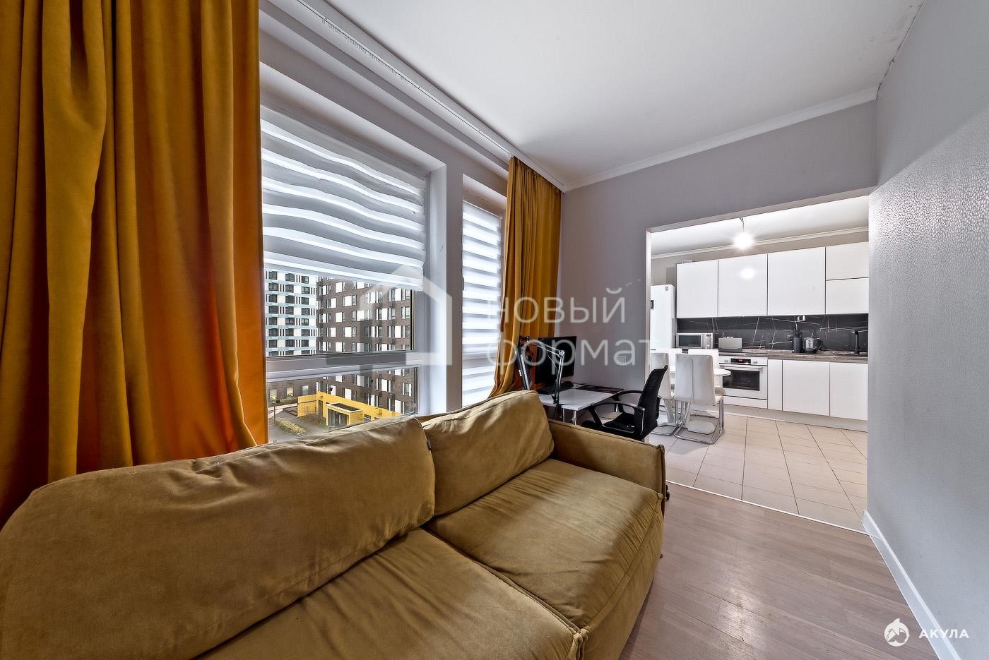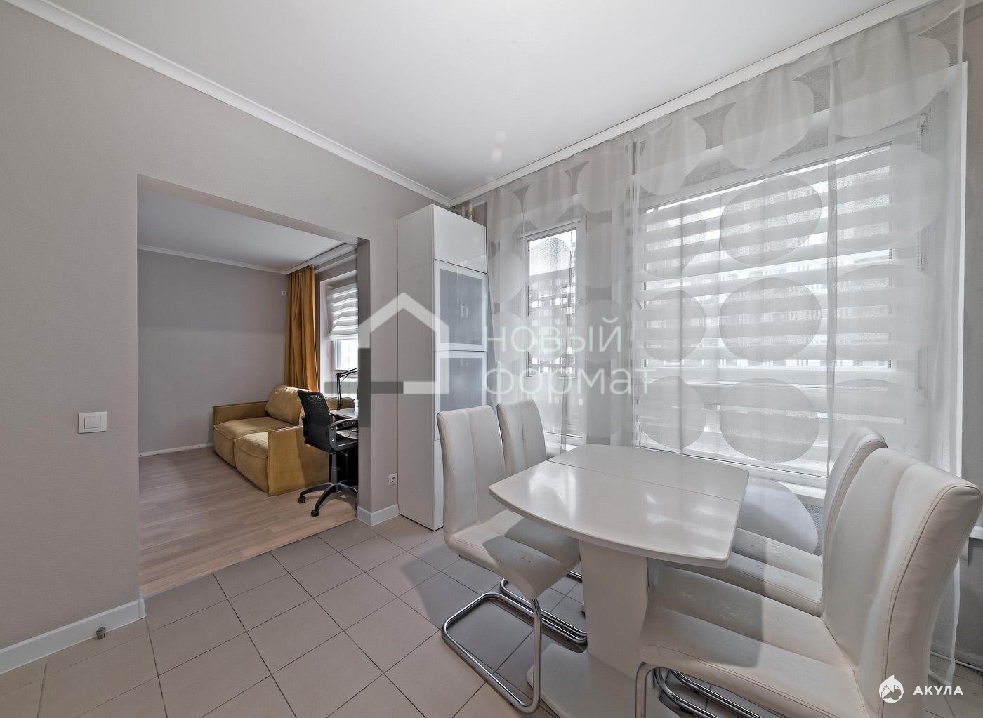 Просторная кухня — идеальное место для семейных ужинов и встреч с друзьями. Комнаты раздельные, одна зонирована на спальню и кабинет. Большие окна наполняют пространство естественным светом. В квартире два санузла, при желании один можно переоборудовать в гардеробную.
