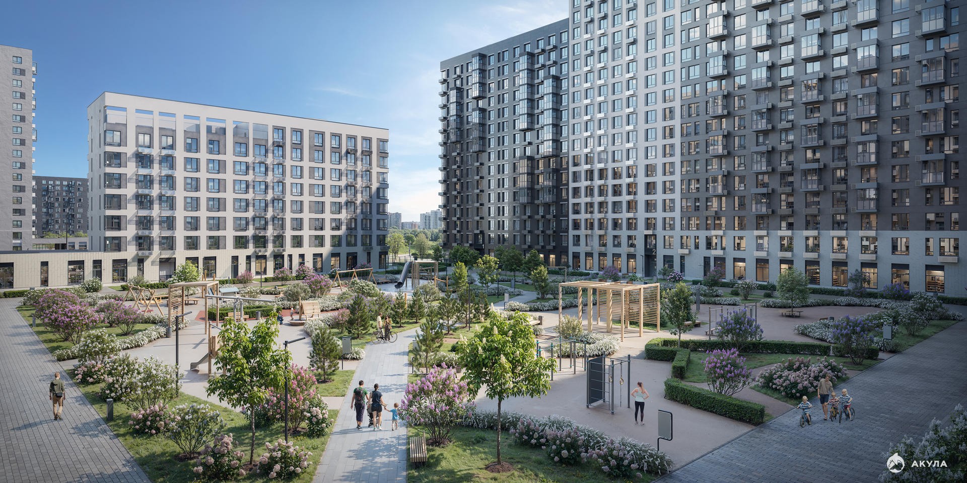ЖК «Мытищи Парк» — это надежные и долговечные монолитные корпуса. При проектировании домов и территории застройщик учел потребности жильцов всех возрастов — молодых пар, семей с детьми и пожилых людей.