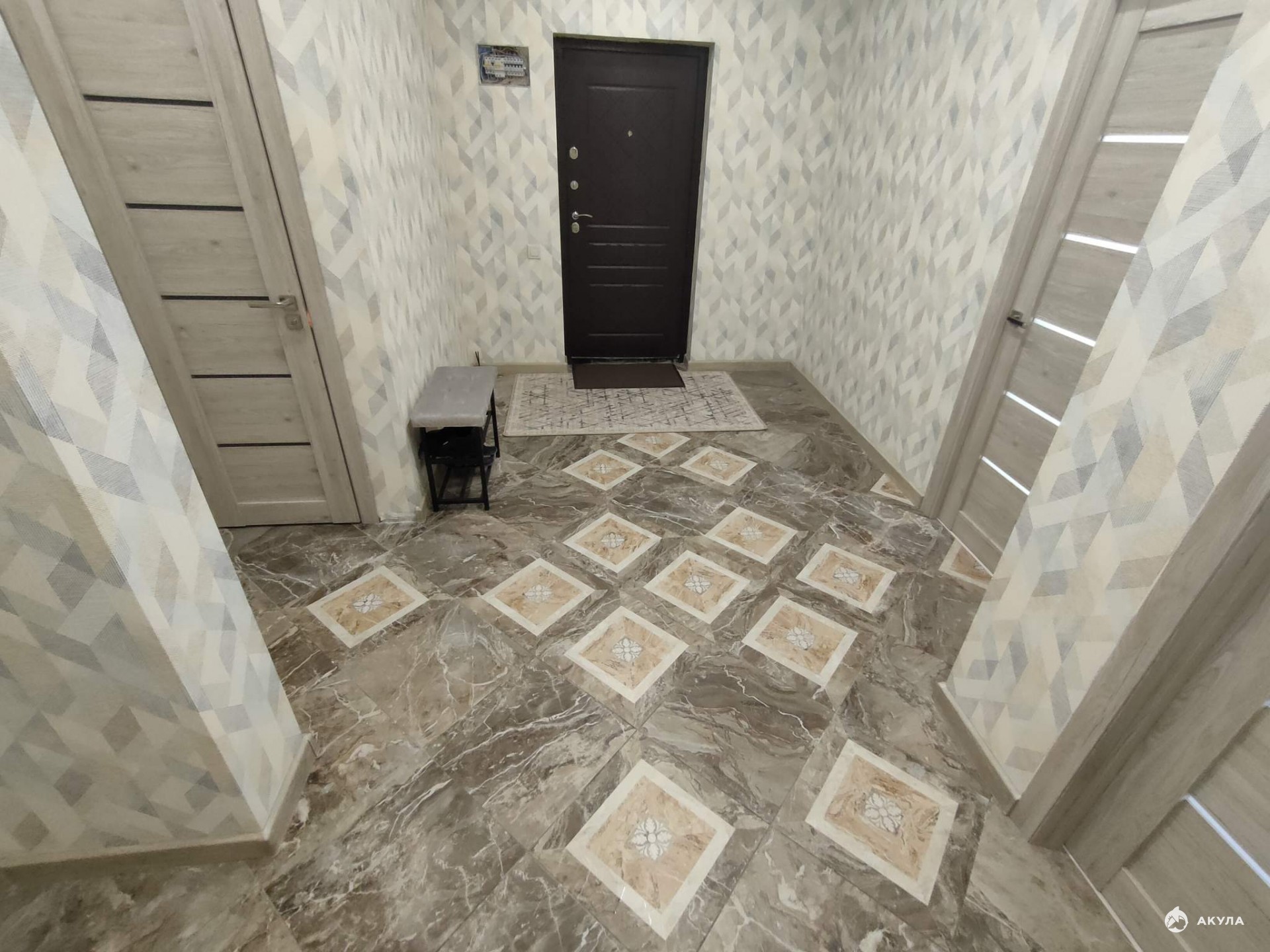 На полу ламинат, плитка, лоджий - 1, окна выходят во двор и на улицу.
