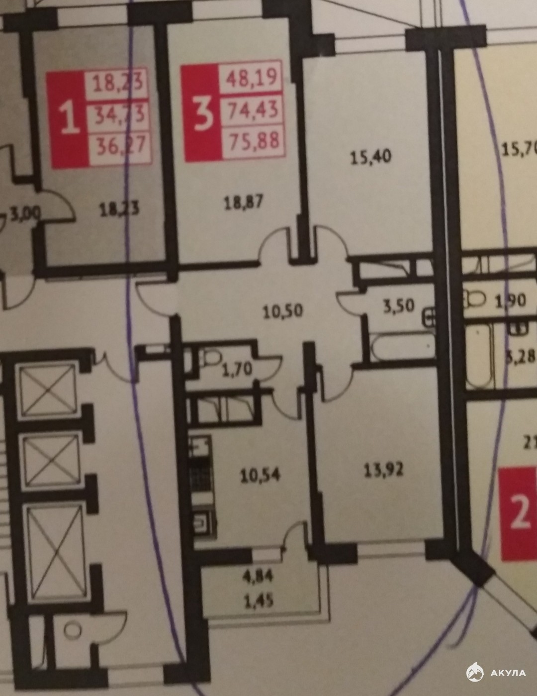 Жилая площадь 48.2 м2, кухня 10.54 кв.м. Площадь комнат: 18.87/15.40/13.92 м2, внутри евро ремонт, комнаты изолированные. Столовая объединена с кухней аркой. Квартира частично с мебелью. Раздельных санузлов - 1.
