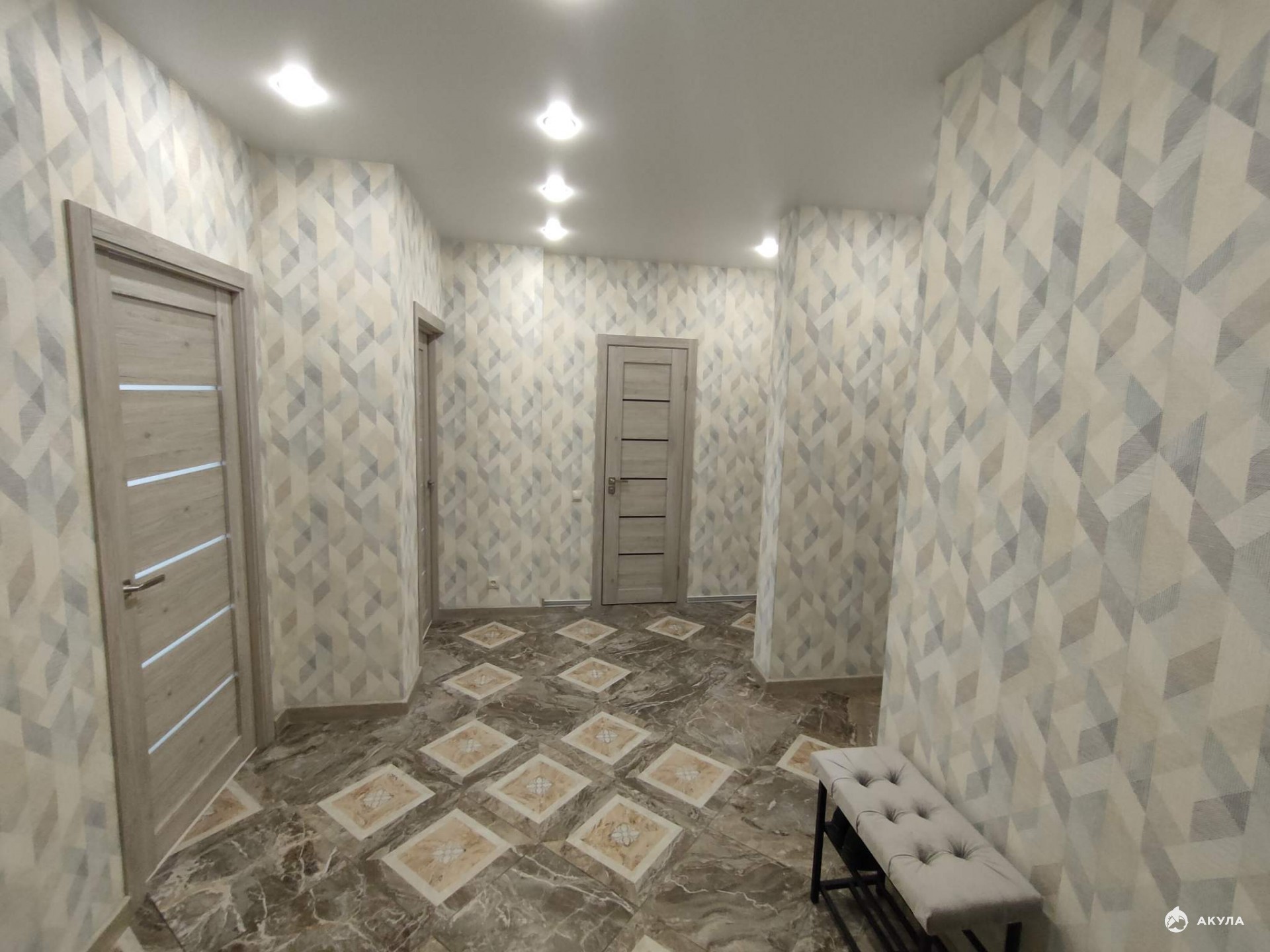 На полу ламинат, плитка, лоджий - 1, окна выходят во двор и на улицу.