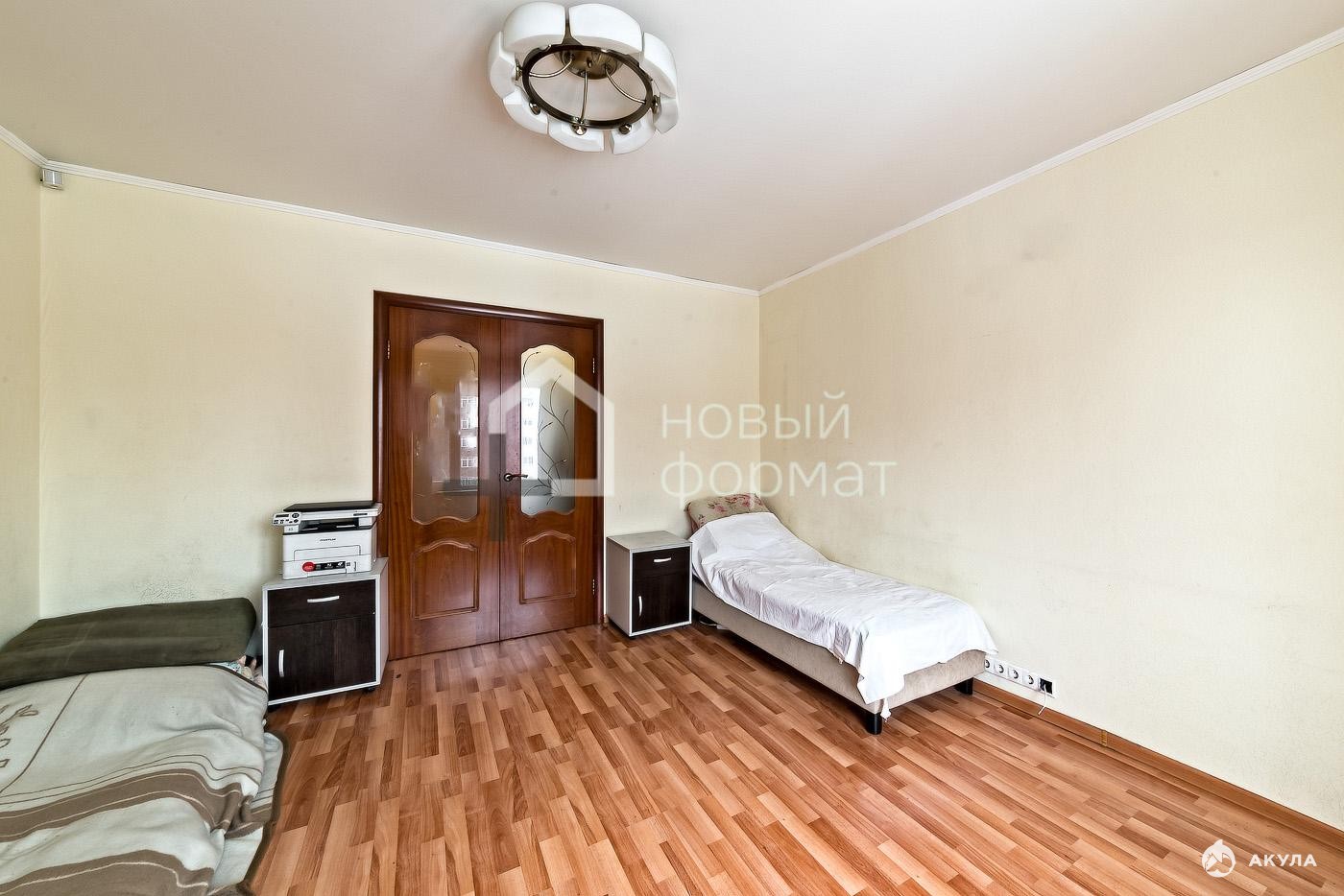 Три изолированные комнаты - 17кв.м./ 14кв.м/ 9кв.м. На окнах стеклопакеты, полы ламинат. Вся представленная мебель на фотографиях остается. Застеленный балкон.