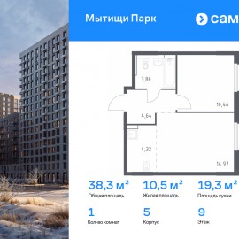 Строим кварталы для жизни с заботой о будущем. Предлагается 1-комнатная квартира комфорт-класса 38, 25 кв.м в корпусе 5 на 9 этаже, в ЖК «Мытищи Парк» Квартира без отделки. Доступность опции «отделка» и возможность комплектации мебелью и декором уточняйте у...