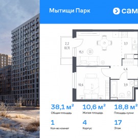 Строим кварталы для жизни с заботой о будущем. Предлагается 1-комнатная квартира комфорт-класса 38, 1 кв.м в корпусе 4 на 17 этаже, в ЖК «Мытищи Парк» Квартира с чистовой отделкой. Доступность дополнительных опций уточняйте у застройщика. Приобрести квартиру возможно по...