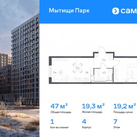 Строим кварталы для жизни с заботой о будущем. Предлагается 1-комнатная квартира комфорт-класса 47 кв.м в корпусе 4 на 7 этаже, в ЖК «Мытищи Парк» Квартира с чистовой отделкой. Доступность дополнительных опций уточняйте у застройщика. Приобрести квартиру возможно по...