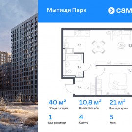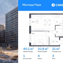 Строим кварталы для жизни с заботой о будущем. Предлагается 1-комнатная квартира комфорт-класса 39, 6 кв.м в корпусе 4 на 17 этаже, в ЖК «Мытищи Парк» Квартира с чистовой отделкой. Доступность дополнительных опций уточняйте у застройщика. Приобрести квартиру возможно по...