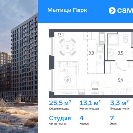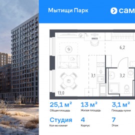 Строим кварталы для жизни с заботой о будущем. Предлагается квартира студия комфорт-класса 25, 5 кв.м в корпусе 4 на 7 этаже, в ЖК «Мытищи Парк» Квартира с чистовой отделкой. Доступность дополнительных опций уточняйте у застройщика. Приобрести квартиру возможно по...