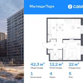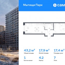 Строим кварталы для жизни с заботой о будущем. Предлагается 1-комнатная квартира комфорт-класса 43, 2 кв.м в корпусе 4.2 на 7 этаже, в ЖК «Мытищи Парк» Квартира с чистовой отделкой. Доступность дополнительных опций уточняйте у застройщика. Приобрести квартиру возможно по...