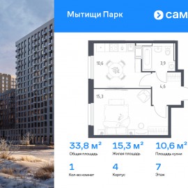 Строим кварталы для жизни с заботой о будущем. Предлагается 1-комнатная квартира комфорт-класса 33, 8 кв.м в корпусе 4 на 7 этаже, в ЖК «Мытищи Парк» Квартира с чистовой отделкой. Доступность дополнительных опций уточняйте у застройщика. Приобрести квартиру возможно по...