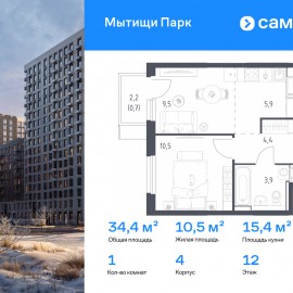 Строим кварталы для жизни с заботой о будущем. Предлагается 1-комнатная квартира комфорт-класса 34, 4 кв.м в корпусе 4 на 12 этаже, в ЖК «Мытищи Парк» Квартира с чистовой отделкой. Доступность дополнительных опций уточняйте у застройщика. Приобрести квартиру возможно по...