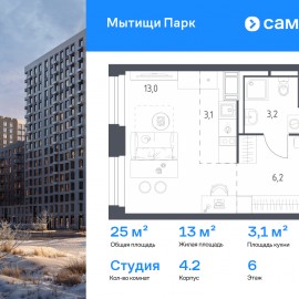 Строим кварталы для жизни с заботой о будущем. Предлагается квартира студия комфорт-класса 25 кв.м в корпусе 4.2 на 6 этаже, в ЖК «Мытищи Парк» Квартира с чистовой отделкой. Доступность дополнительных опций уточняйте у застройщика. Приобрести квартиру возможно по...