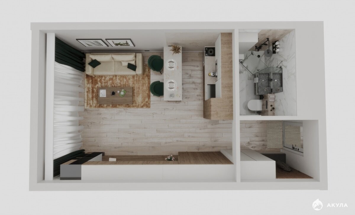 Общая площадь: 24.6 м2. Стоимость указана без отделки.