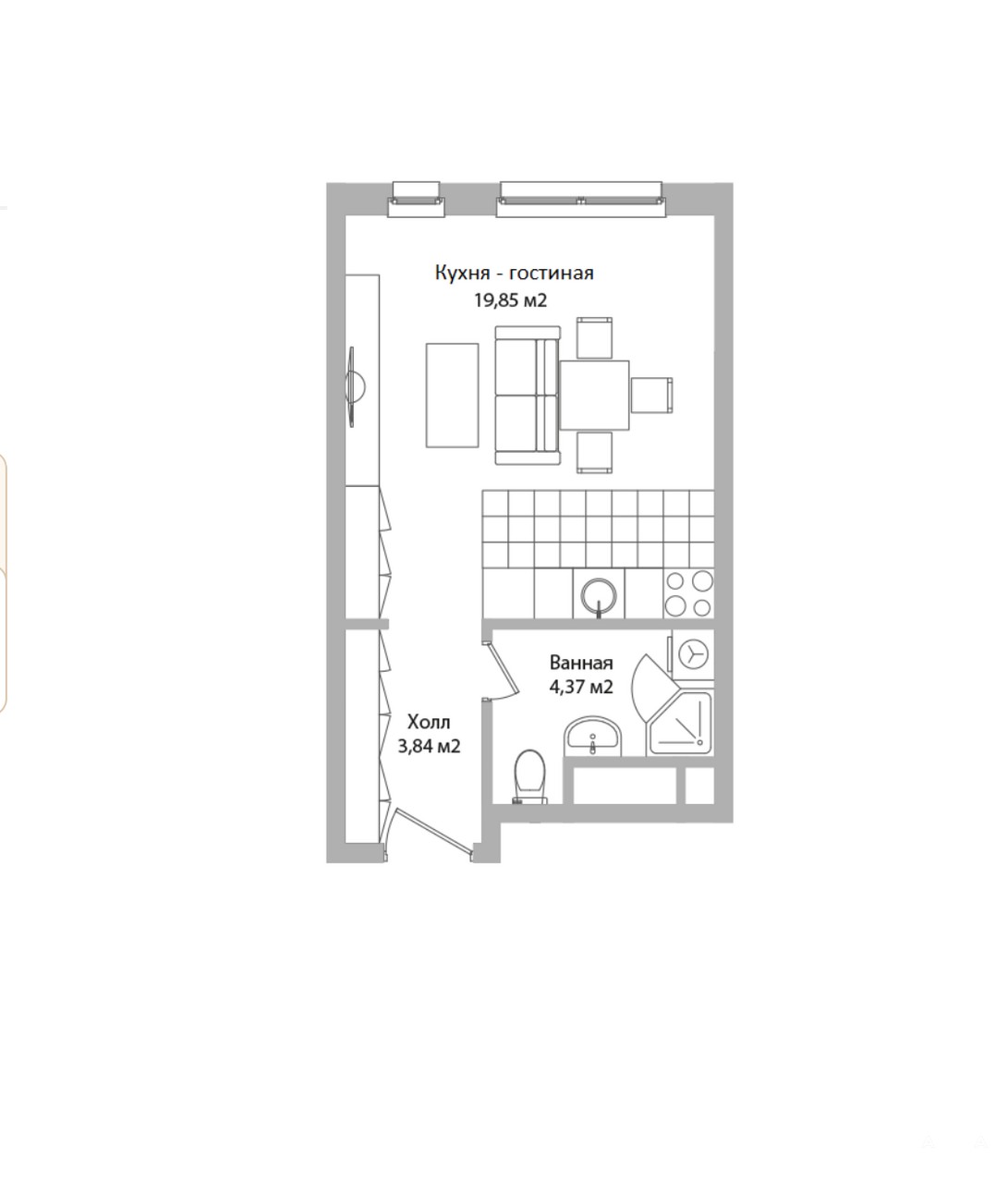 Общая площадь 28, 1 м2. Стоимость указана с отделкой под ключ.