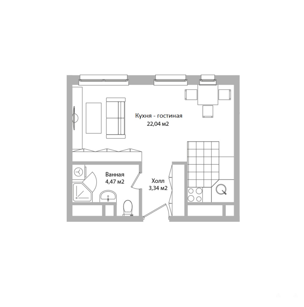 Общая площадь: 29.9 м2. Стоимость указана с отделкой под ключ. Возможно купить с отделкой и без отделки. С меблировкой и без.