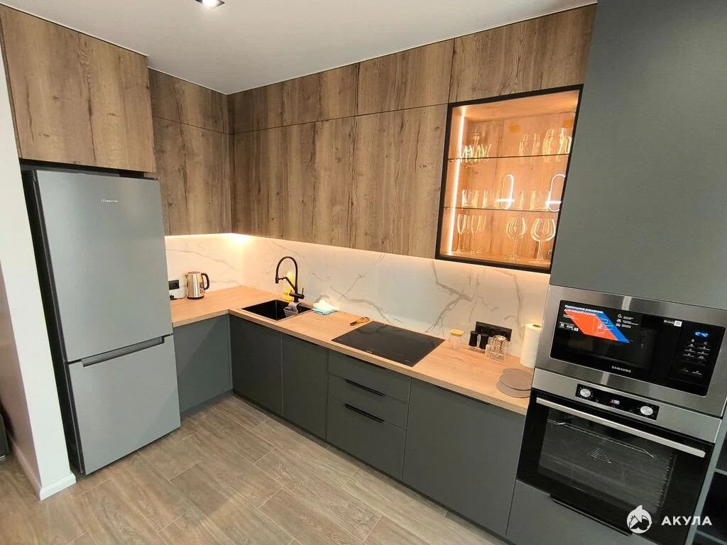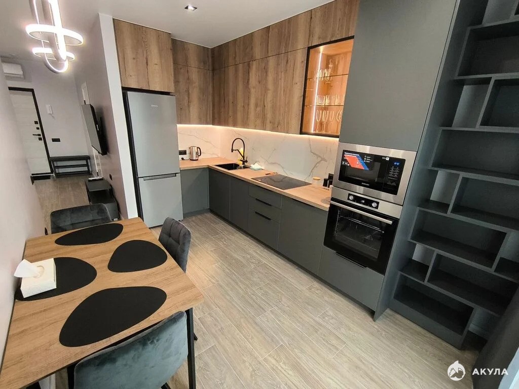 В квартире есть все необходимое для комфортного проживания: мебель и стильная кухня с индукционной плитой и холодильником, стиральная машина, кондиционер. С застекленным балконом (4 кв.м.) площадь квартиры составляет 50 кв.м. - полноценная евродвушка! Квартира в доме 2021 года постройки. AFY-345526462