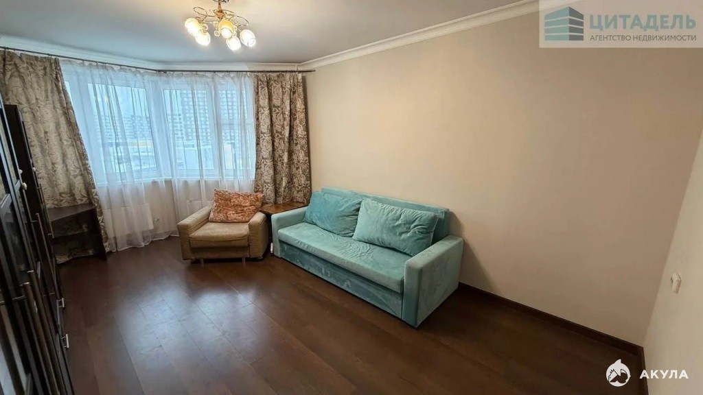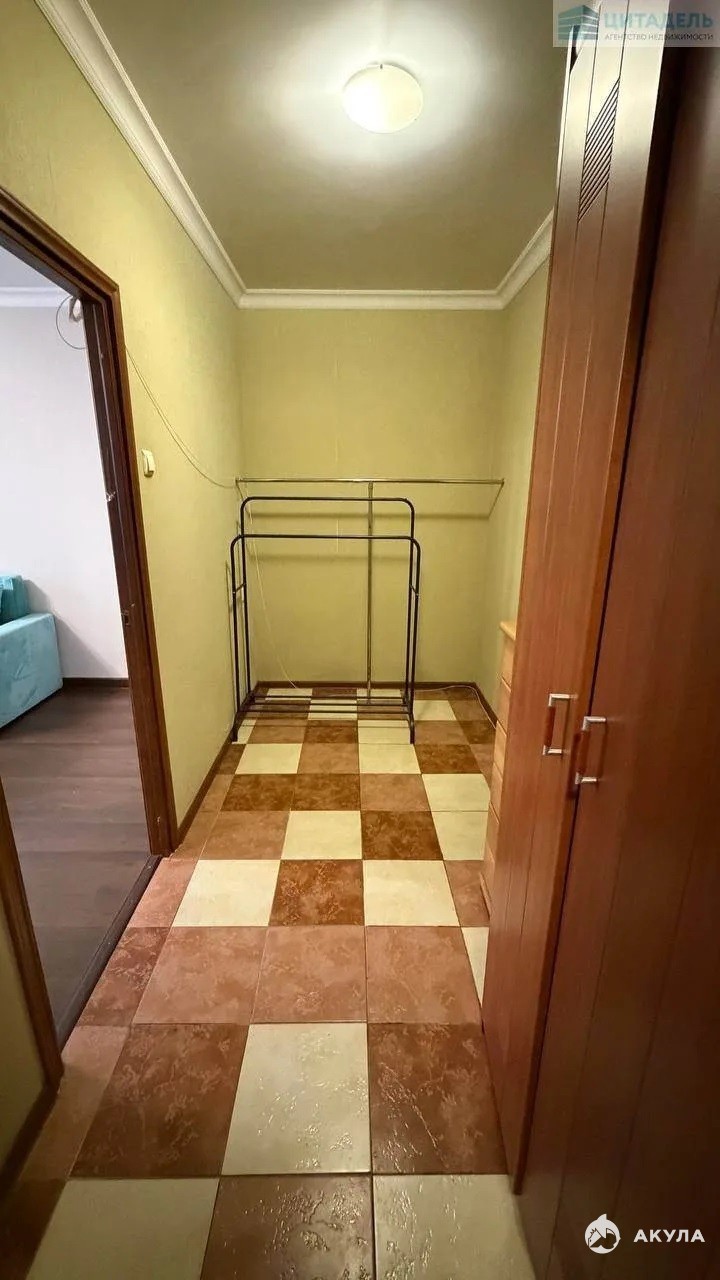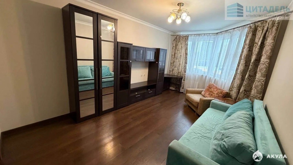 Высокий этаж. Удобная планировка: большая комната, просторная гардеробная и лоджия. В квартире есть все для комфортного проживания. Арендаторам доступны качественная мебель и техника, представленные на фото, а также новые стиральная машина и холодильник. Большой тамбур позволит хранить средства индивидуальной мобильности.