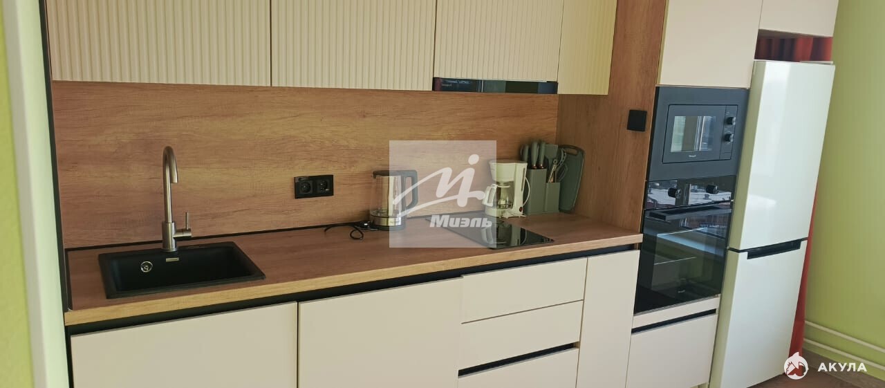 Квартира полностью укомплектована мебелью (большая кровать, удобный диван, телевизор); установлена шикарная кухня, оснащенная новой техникой, включая посудомоечную машину, микроволновую печь, духовой шкаф, электрочайник, кофеварку. Также имеются комплекты столовой посуды, кастрюль, столовых приборов. Та