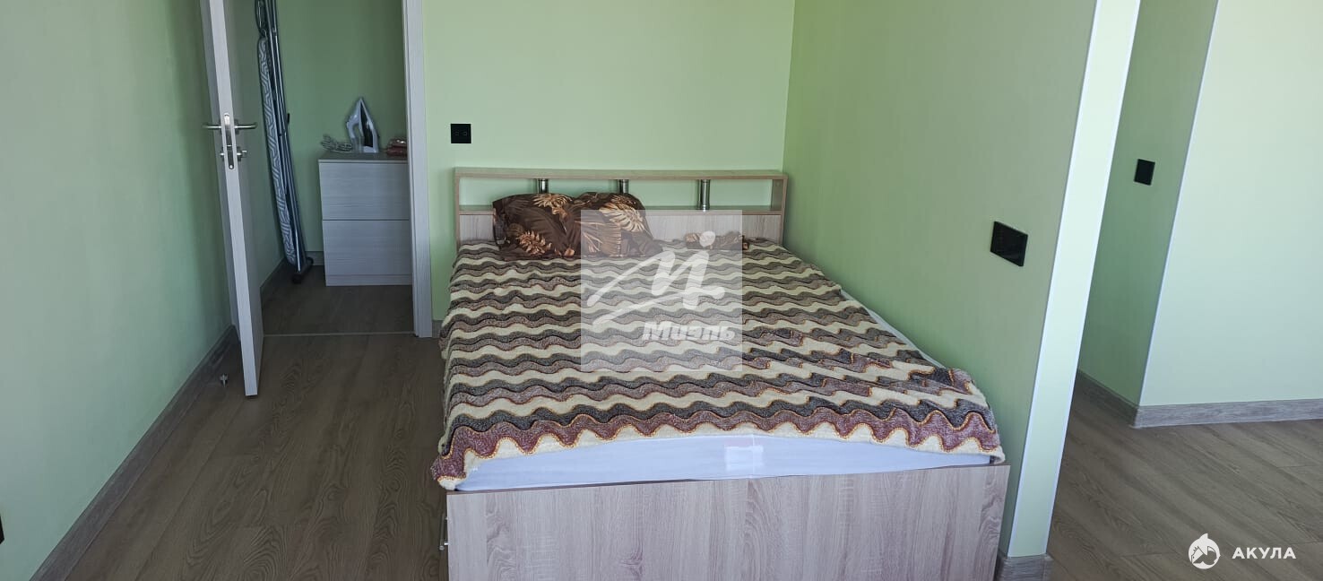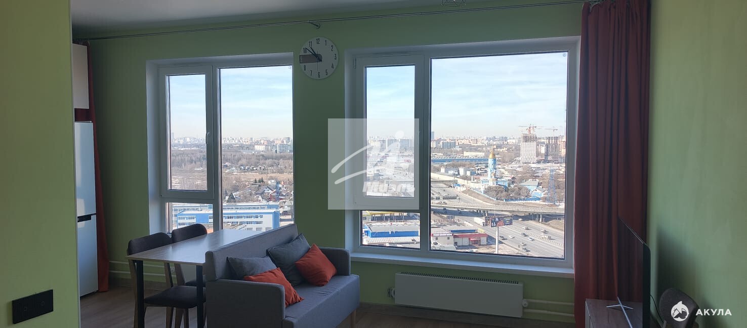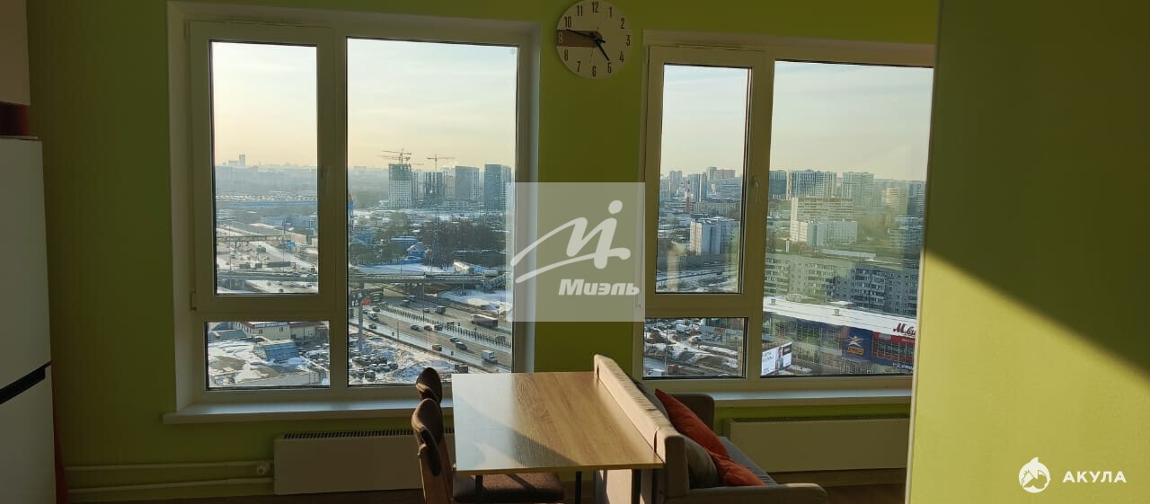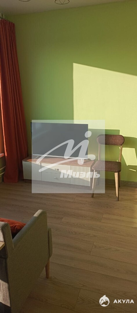 В квартире два больших окна, за счет чего в ней много света.