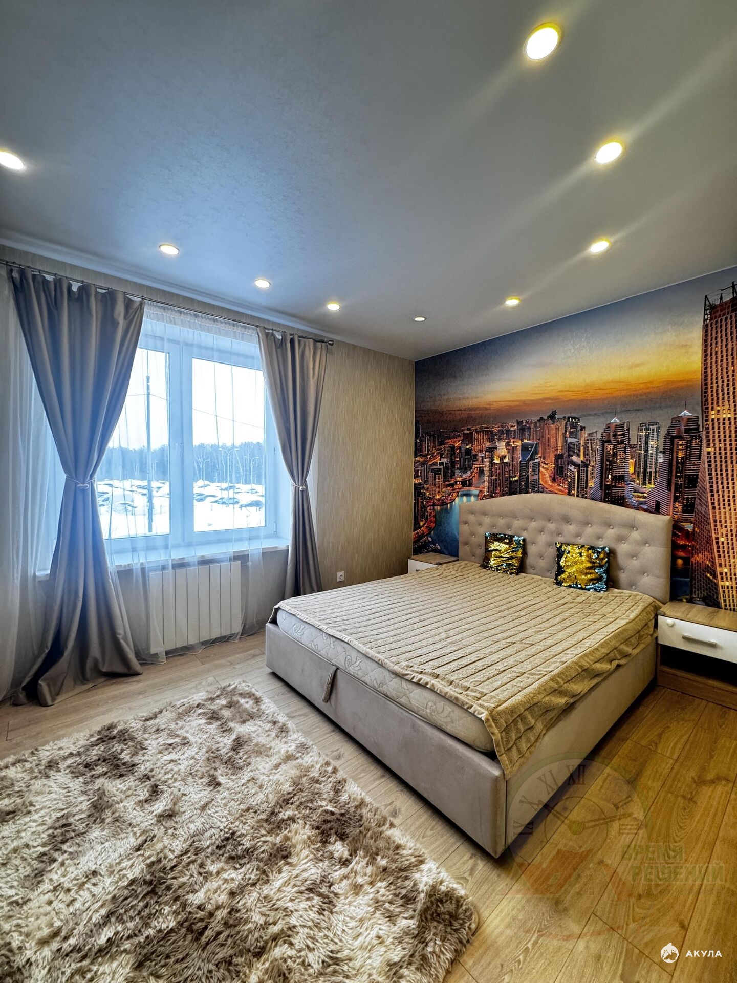 Спальня: Просторная двуспальная кровать (160x200 см) с ортопедическим матрасом, кровать с подъемным механизмом и ящиками для хранения, компьютерный стол, туалетный столик и прикроватные тумбочки.